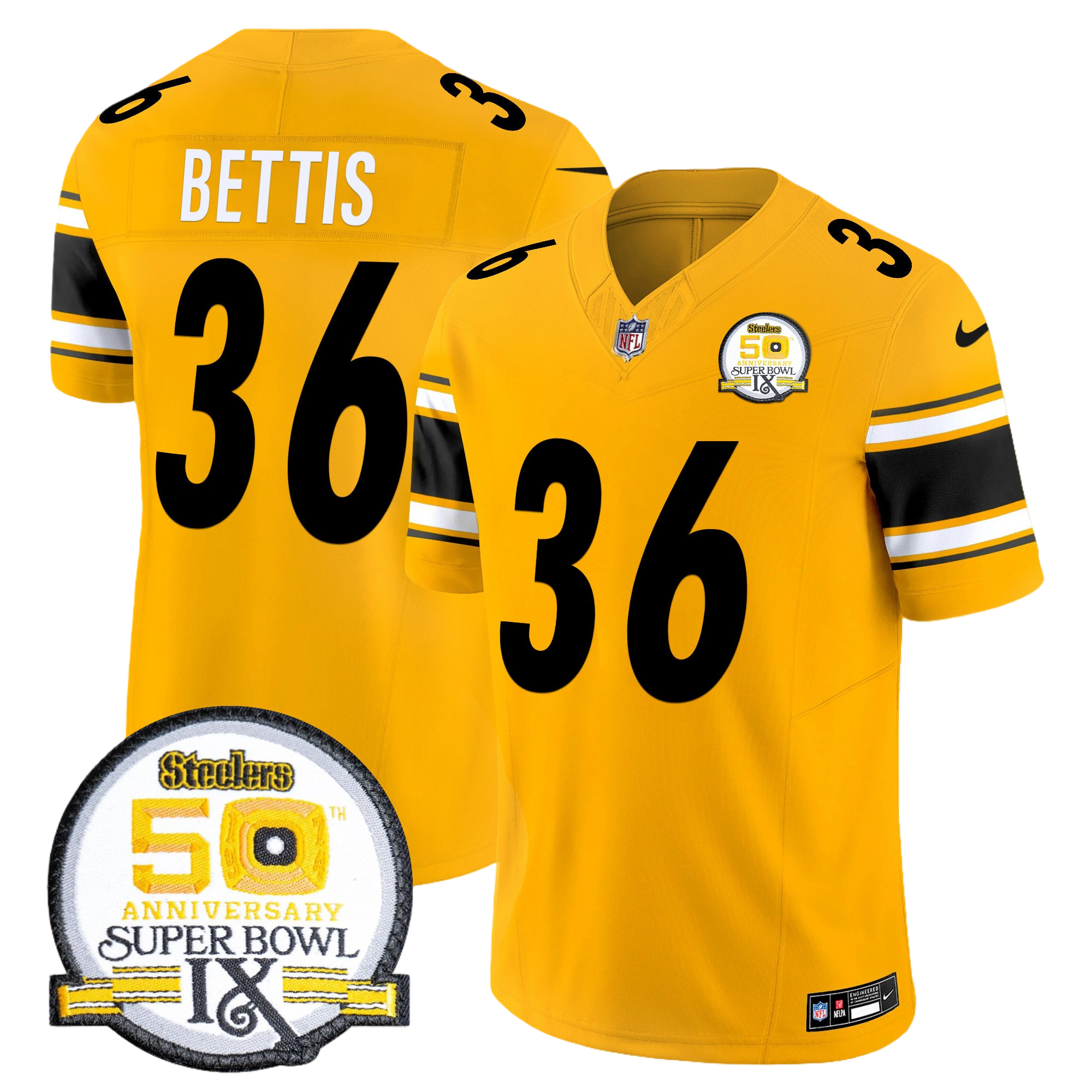 Pittsburgh Steelers 50th Anniversary of Super Bowl IX Patch Gold Vapor Limited Jersey – All Stitched 11- #36 Jerome Bettis