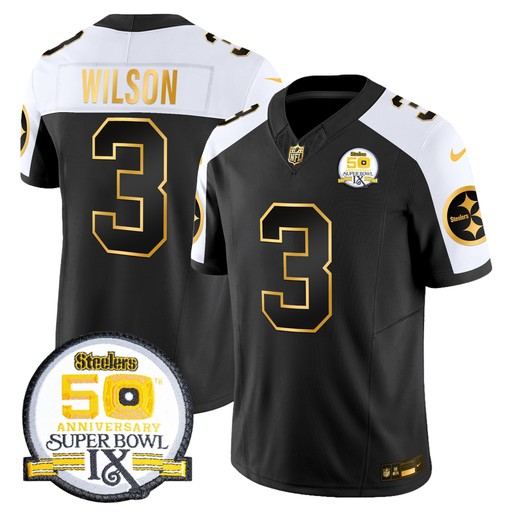 Pittsburgh Steelers 50th Anniversary of Super Bowl IX Patch Gold Vapor Limited Jersey – All Stitched 19- #3 Russell Wilson