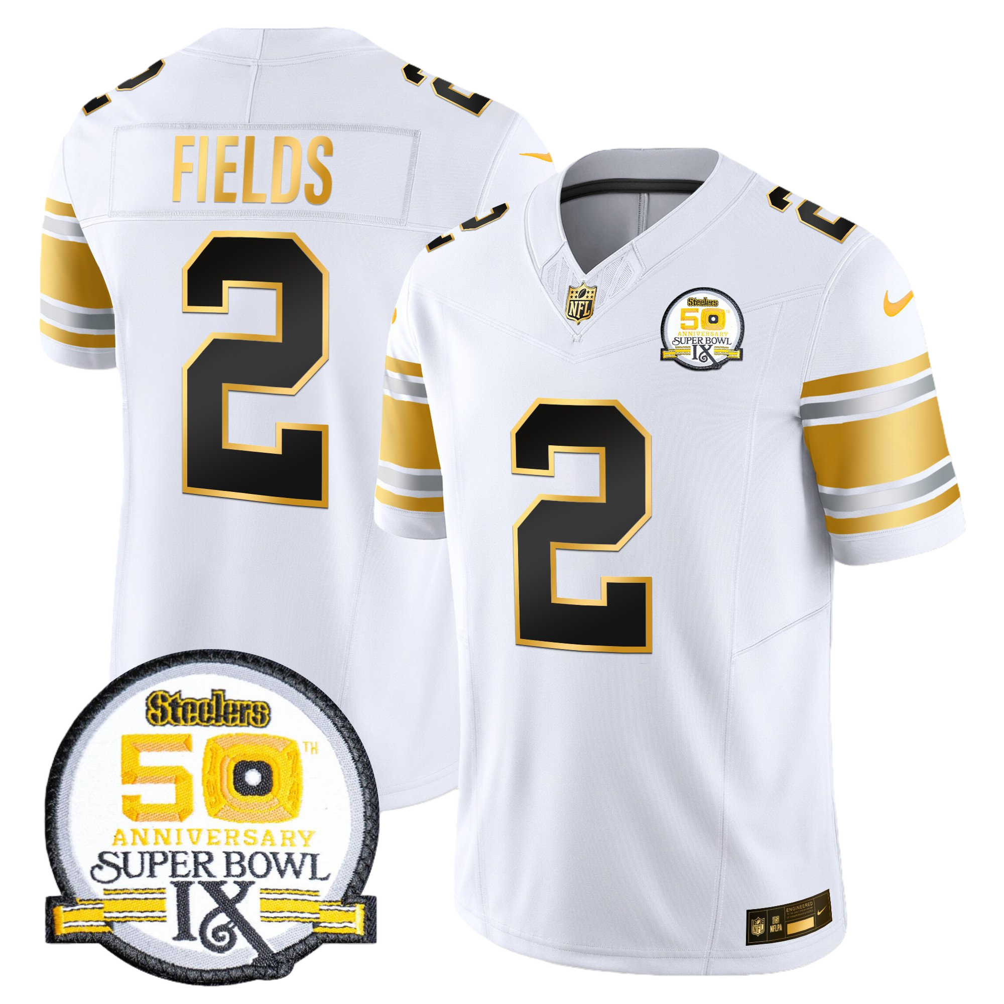 Pittsburgh Steelers 50th Anniversary of Super Bowl IX Patch Gold Vapor Limited Jersey – All Stitched 27- #2 Justin Fields