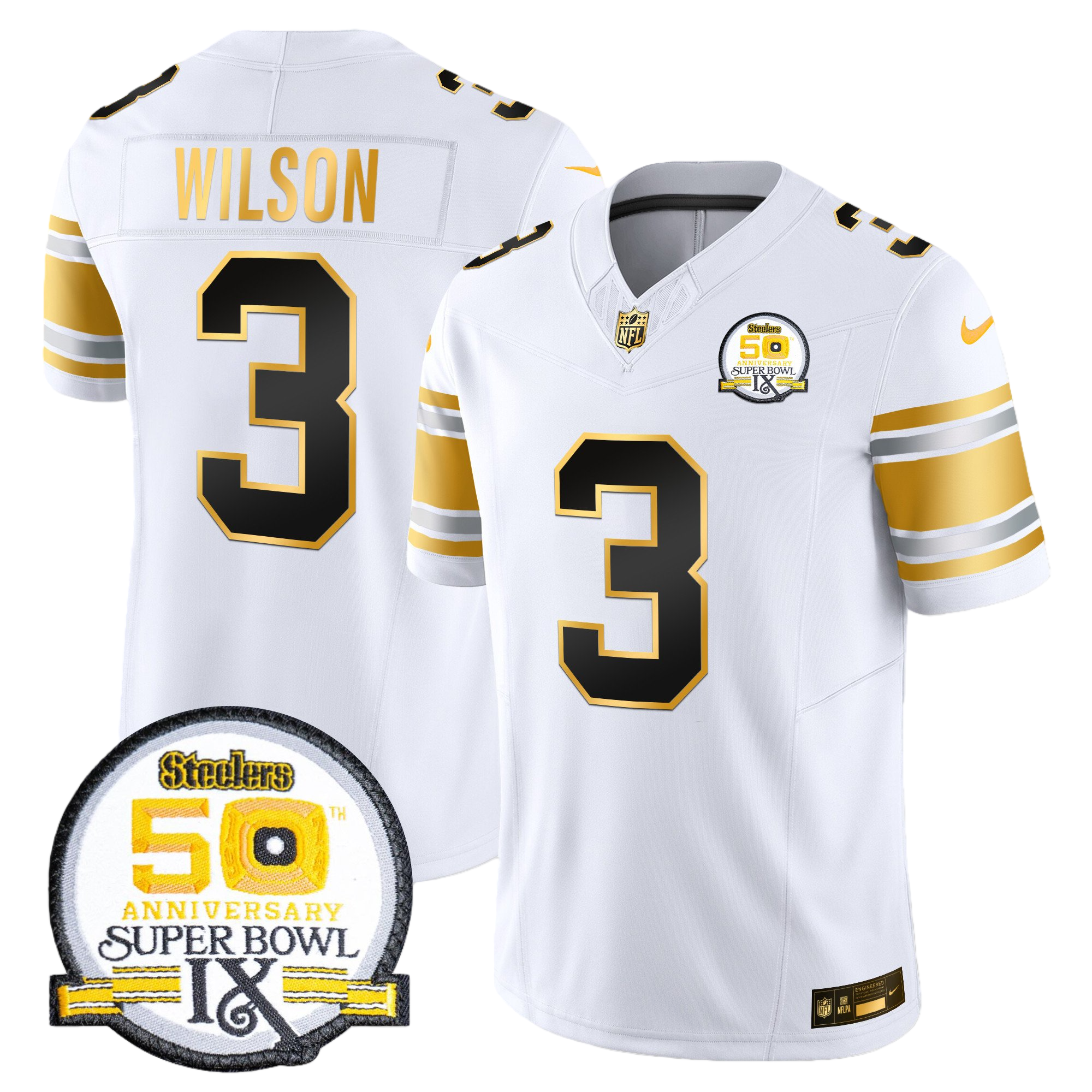 Pittsburgh Steelers 50th Anniversary of Super Bowl IX Patch Gold Vapor Limited Jersey – All Stitched 10- #3 Russell Wilson