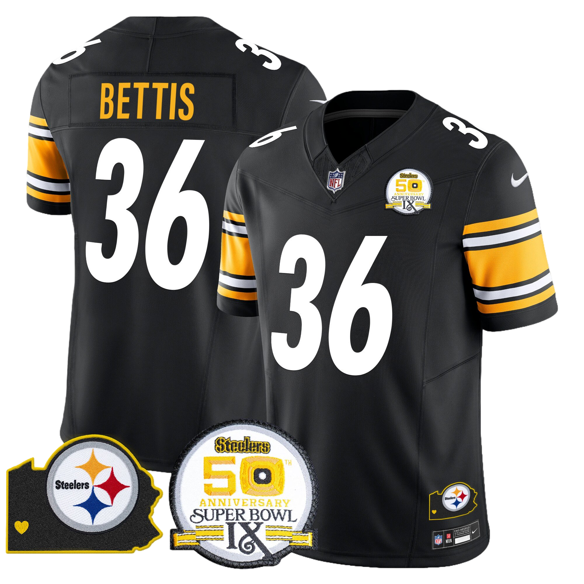 Pittsburgh Steelers 50th Anniversary Of Super Bowl IX & Map Patch Vapor Limited Jersey – All Stitched 1- #36 Jerome Bettis