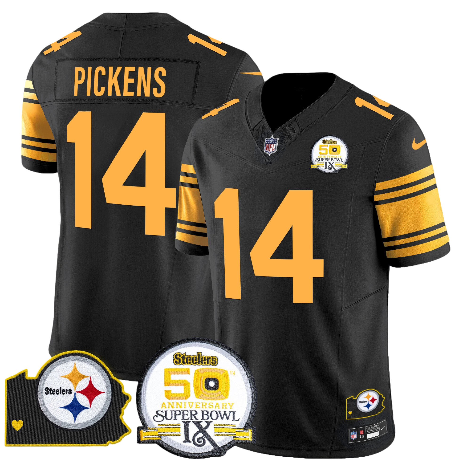 Pittsburgh Steelers 50th Anniversary Of Super Bowl IX & Map Patch Vapor Limited Jersey – All Stitched 7- #14 George Pickens
