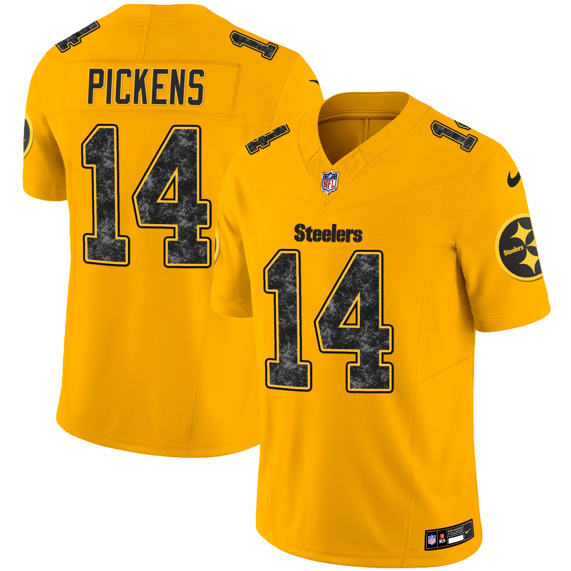 Pittsburgh Steelers Home Patch Gold Vapor Jersey – All Stitched 4- #14 George Pickens