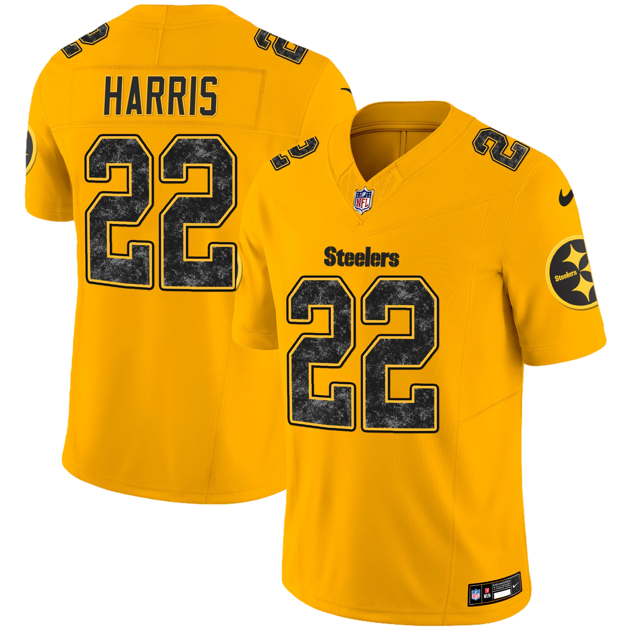 Pittsburgh Steelers Home Patch Gold Vapor Jersey – All Stitched 3- #22 Najee Harris
