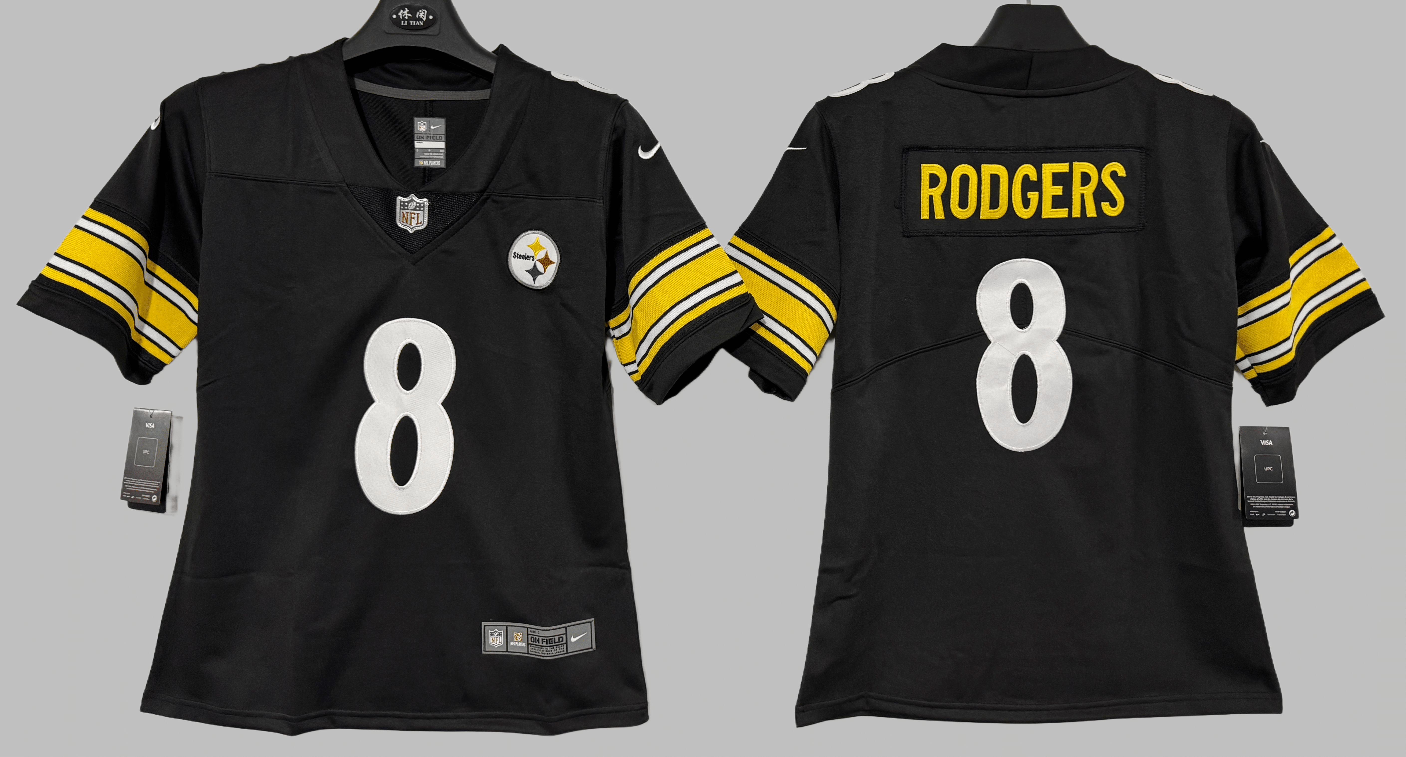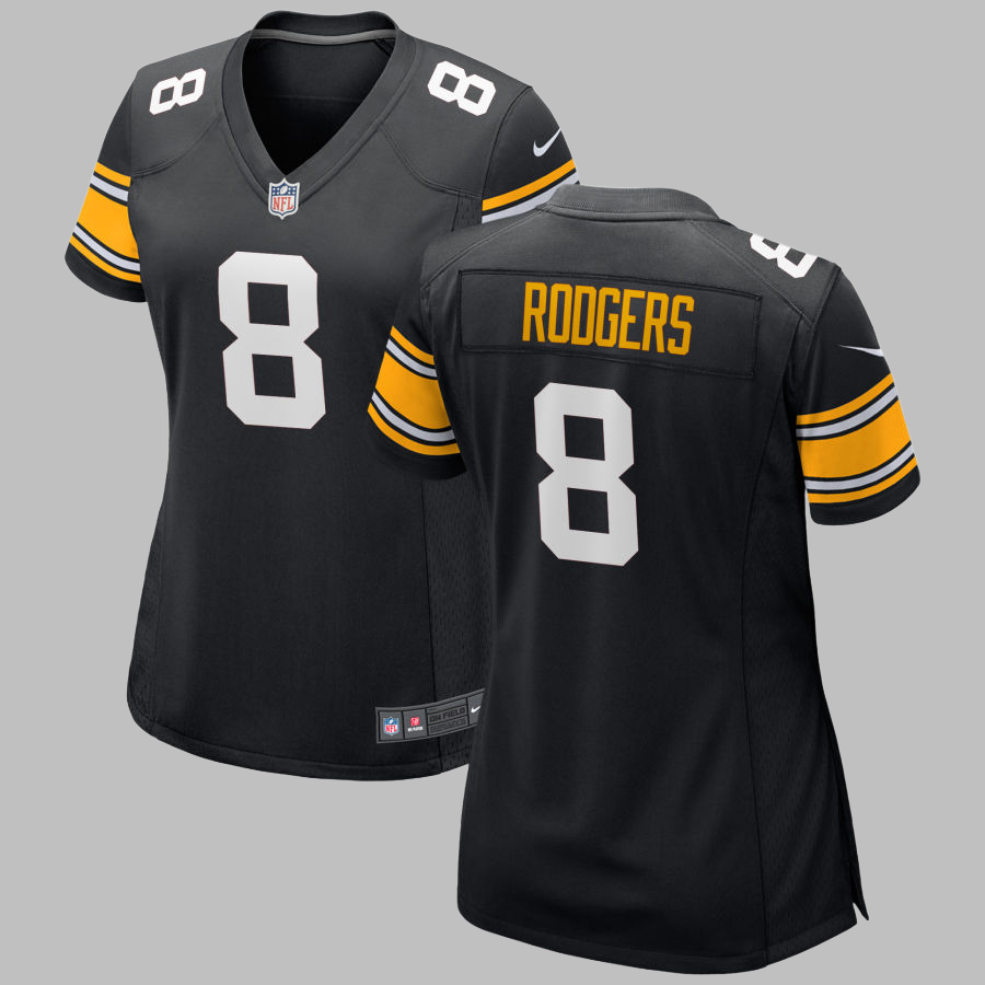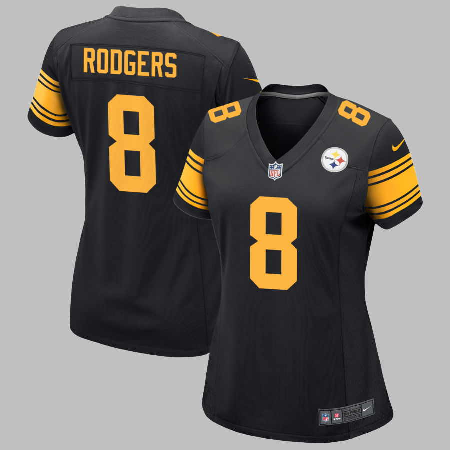 Women's Pittsburgh Steelers #8 Aaron Rodgers All Stitched NFL Alternate Black Jersey