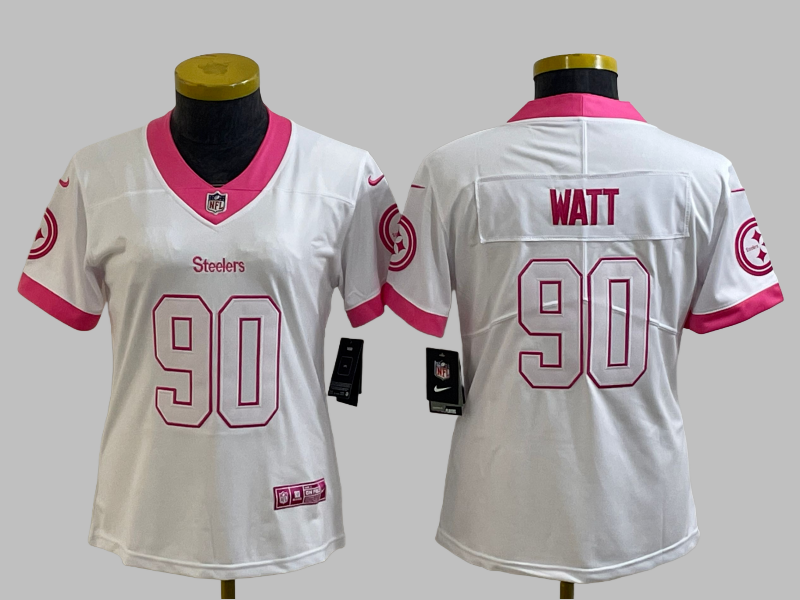 Women's Pittsburgh Steelers #90 T.J. Watt All Stitched NFL Limited Jersey White Pink