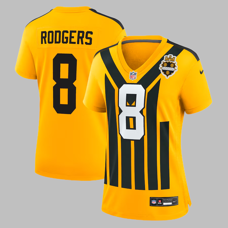 Women's Pittsburgh Steelers #8 Aaron Rodgers Gold Alternate 1933 Throwback All Stitched NFL Jersey