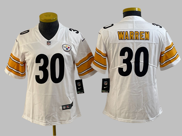 Women's Pittsburgh Steelers #30 Jaylen Warren Stitched Limited NFL Jersey White