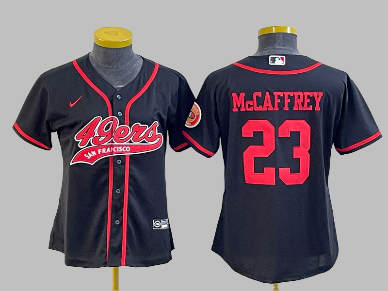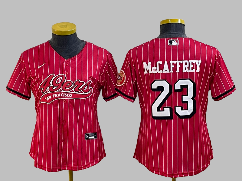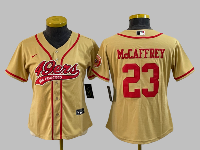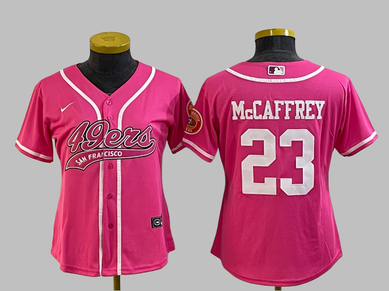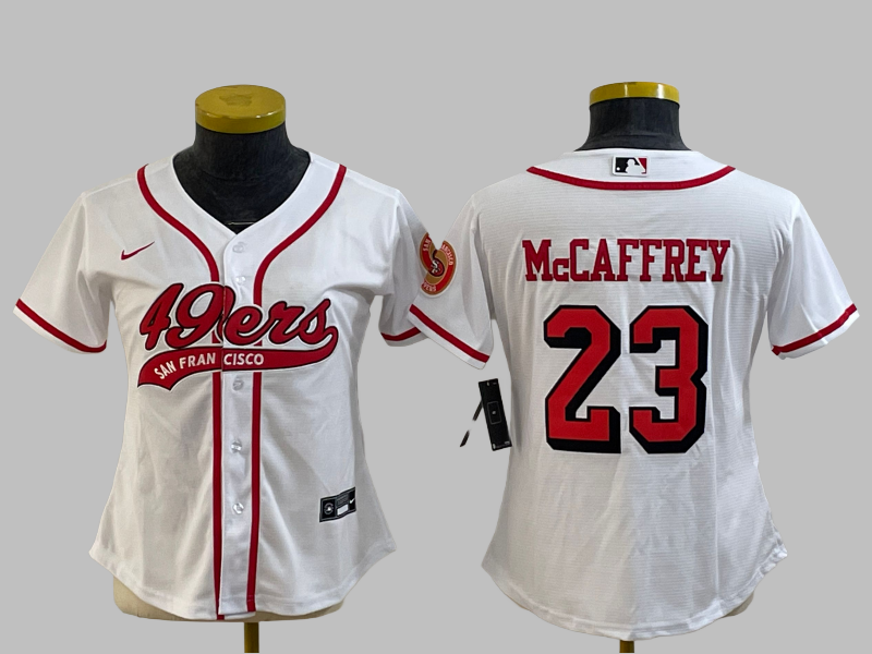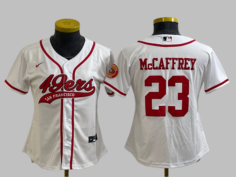 Women's San Francisco 49ers #23 Christian McCaffrey All Stitched NFL x MLB Jersey SF0023