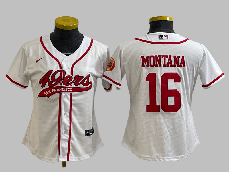 Women's San Francisco 49ers #16 Joe Montana All Stitched NFL x MLB Jersey SF0001