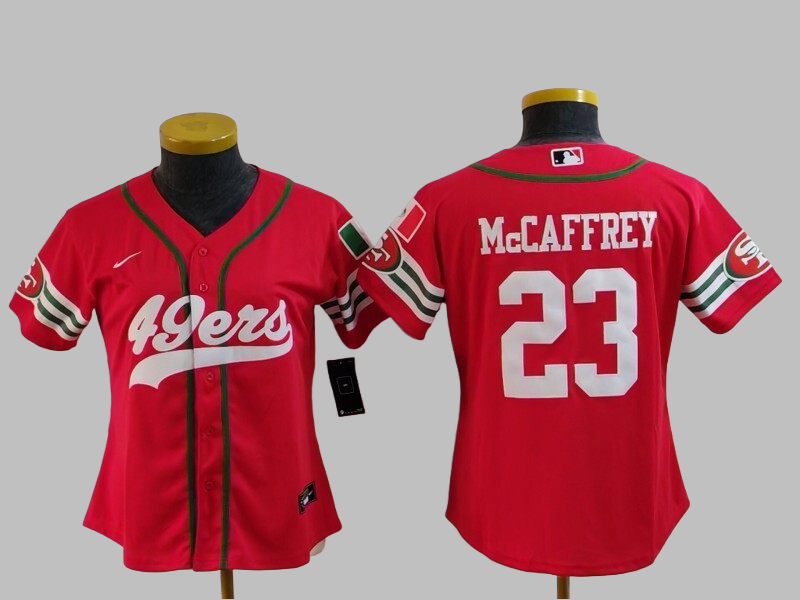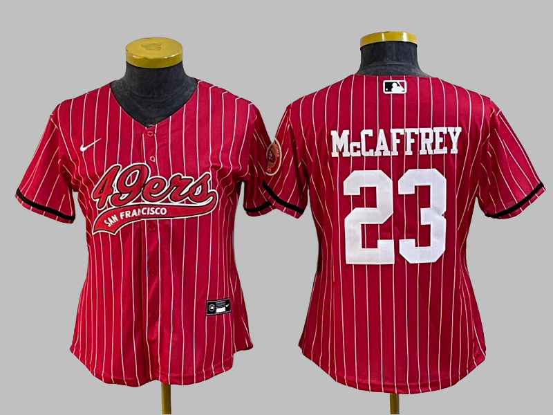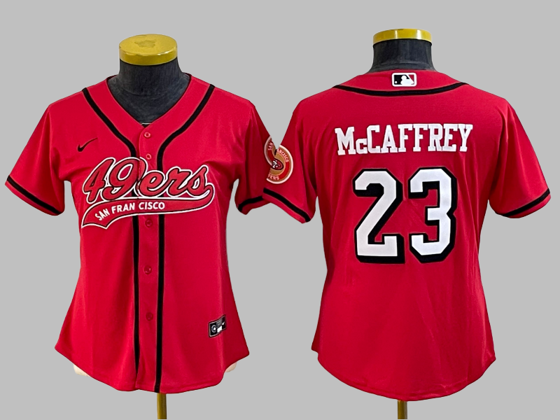 Women's San Francisco 49ers #23 Christian McCaffrey All Stitched NFL x MLB Jersey SF0031