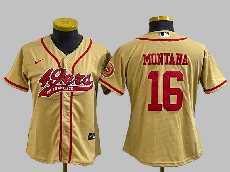Women's San Francisco 49ers #16 Joe Montana All Stitched NFL x MLB Jersey SF0003