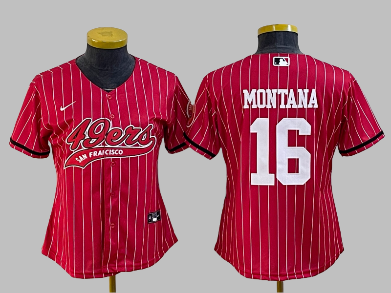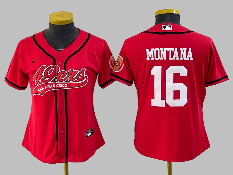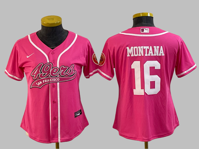 Women's San Francisco 49ers #16 Joe Montana All Stitched NFL x MLB Jersey SF0036
