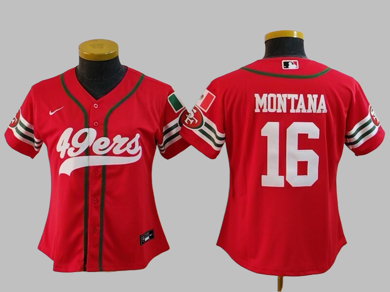 Women's San Francisco 49ers #16 Joe Montana All Stitched NFL x MLB Jersey SF0027