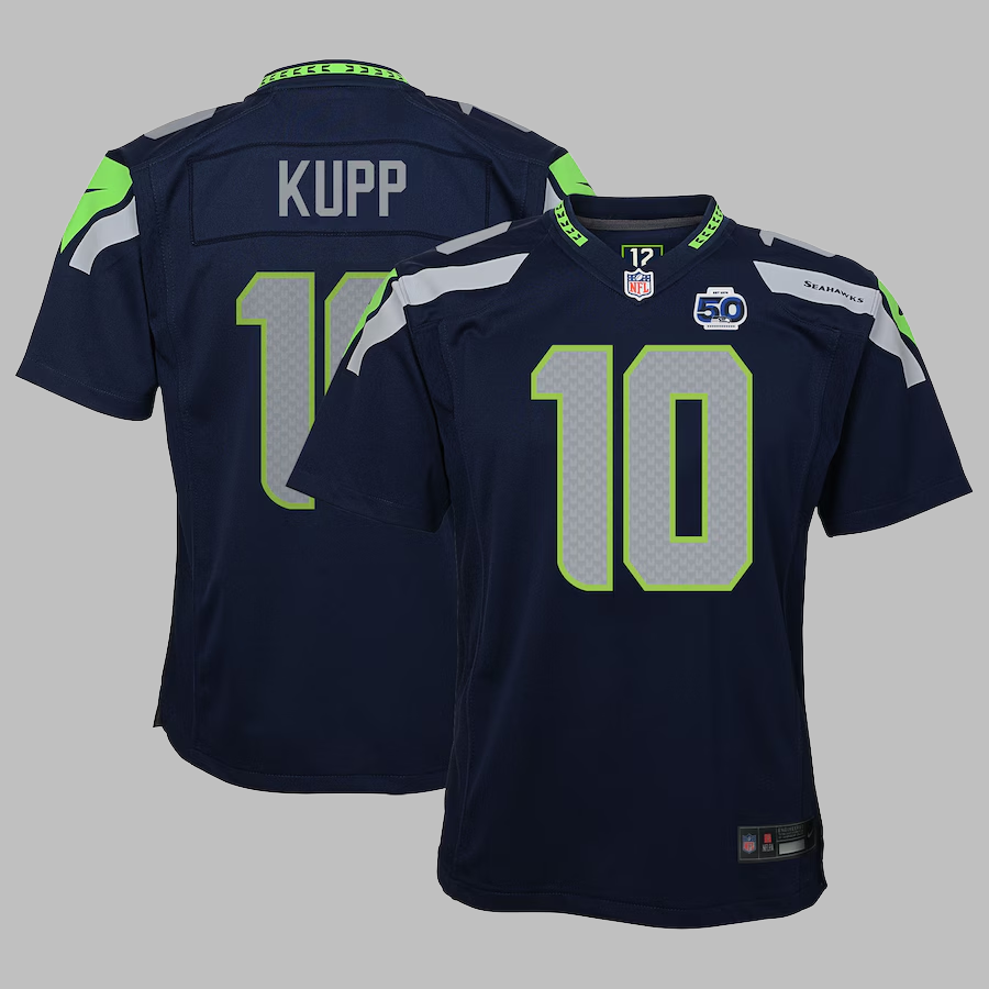 Youth Seattle Seahawks #10 Cooper Kupp All Stitched NFL College Navy 50th Season Team Jersey