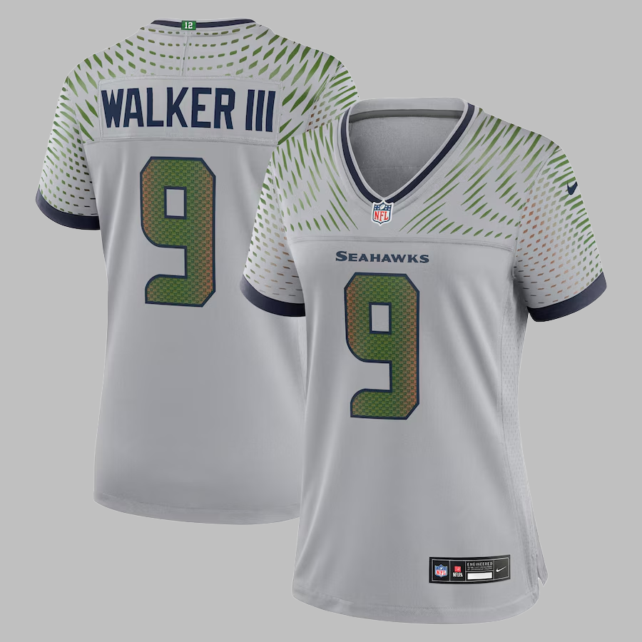 Women's Seattle Seahawks #9 Kenneth Walker III Wolf Gray 2025 Rivalries Collection All Stitched NFL Jersey
