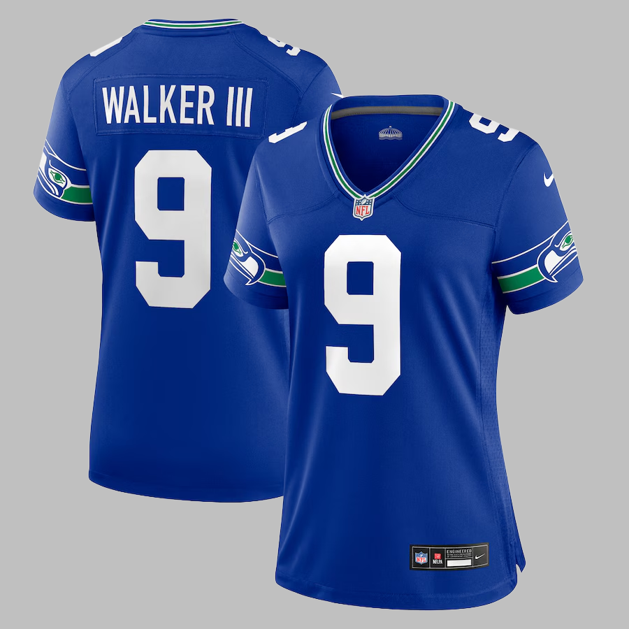 Women's Seattle Seahawks #9 Kenneth Walker III All Stitched NFL Royal Throwback Jersey