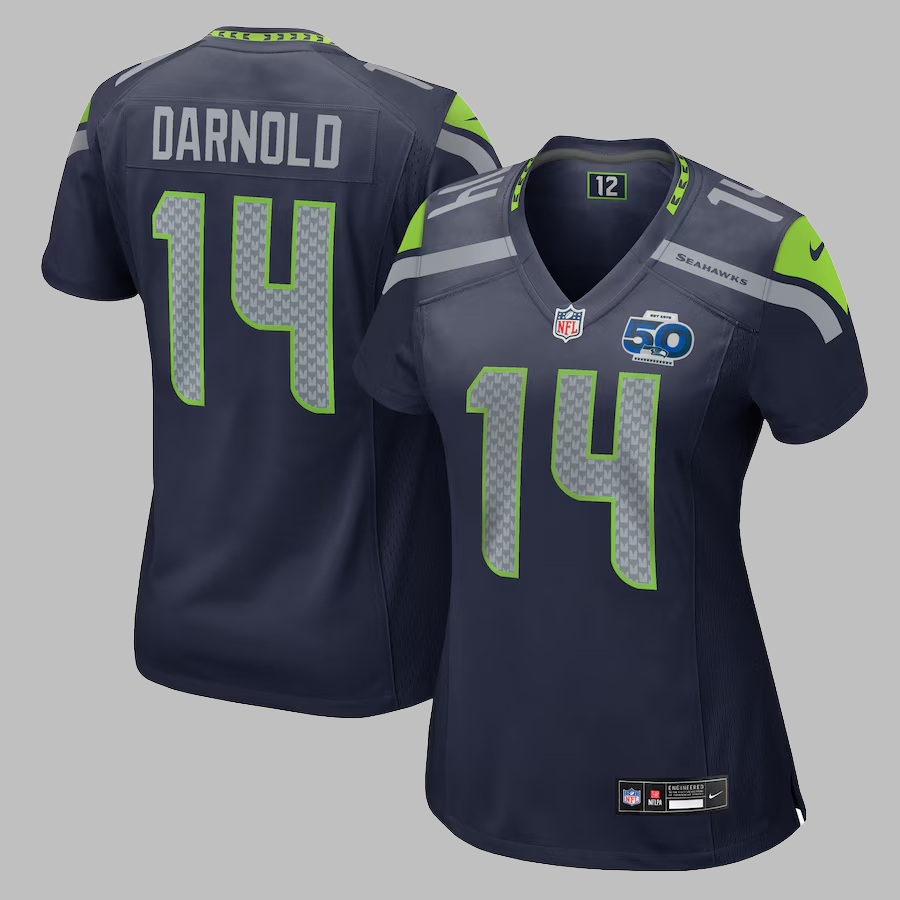Women's Seattle Seahawks #14 Sam Darnold All Stitched NFL College Navy 50th Season Jersey