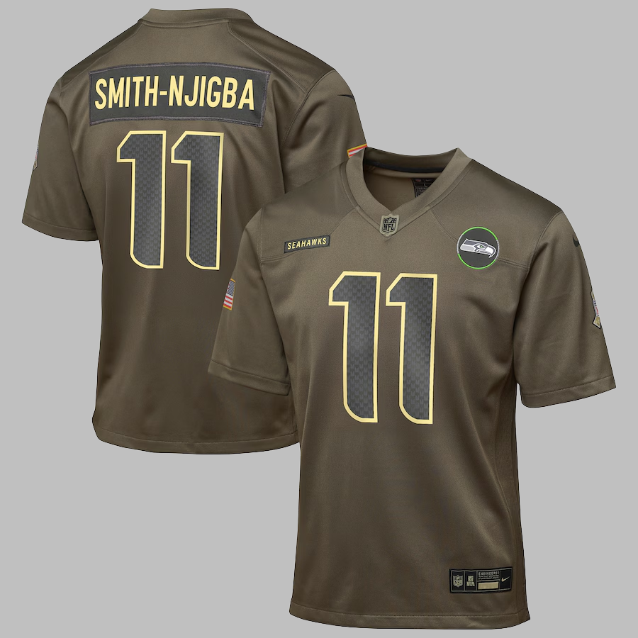 Youth Seattle Seahawks #11 Jaxon Smith-Njigba All Stitched NFL Olive 2025 Salute to Service Jersey
