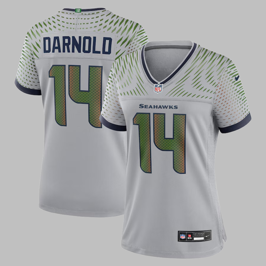Women's Seattle Seahawks #14 Sam Darnold Wolf Gray 2025 Rivalries Collection All Stitched NFL Jersey