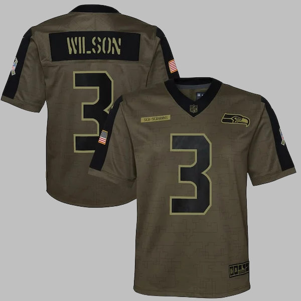 Youth Seattle Seahawks #3 Russell Wilson Stitched Limited NFL Jersey Olive Salute to Service