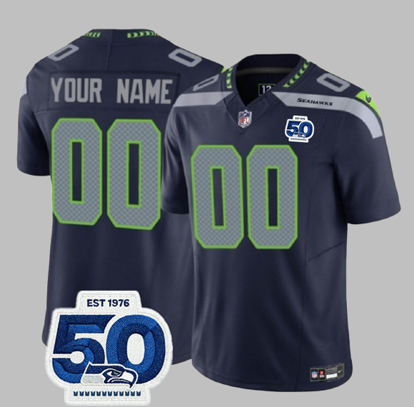 Seattle Seahawks All Stitched NFL Custom Navy 50th F.U.S.E. Vapor Limited Jersey - Men's & Women's & Youth & Toddler