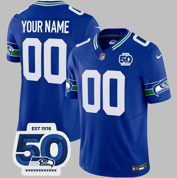 Seattle Seahawks All Stitched NFL Custom Royal 50th F.U.S.E. Vapor Limited Jersey - Men's & Women's & Youth & Toddler