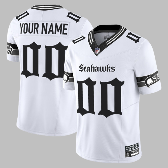 Seattle Seahawks All Stitched NFL Custom 'Gothic Rain City Shadows Edition' F.U.S.E. Vapor Limited Jersey White - Men's & Women's & Youth & Toddler