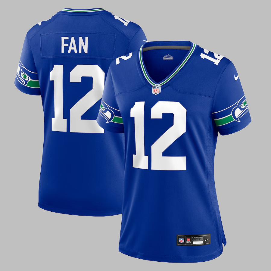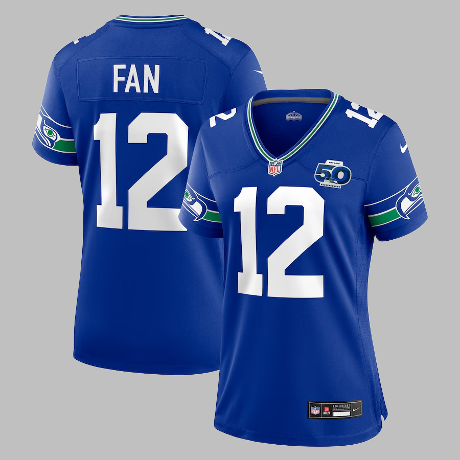 Women's Seattle Seahawks #12 Fan All Stitched NFL Royal 50th Season Throwback Jersey