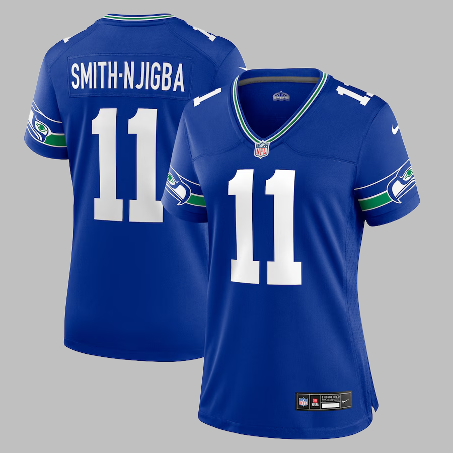 Women's Seattle Seahawks #11 Jaxon Smith-Njigba All Stitched NFL Royal Throwback Jersey