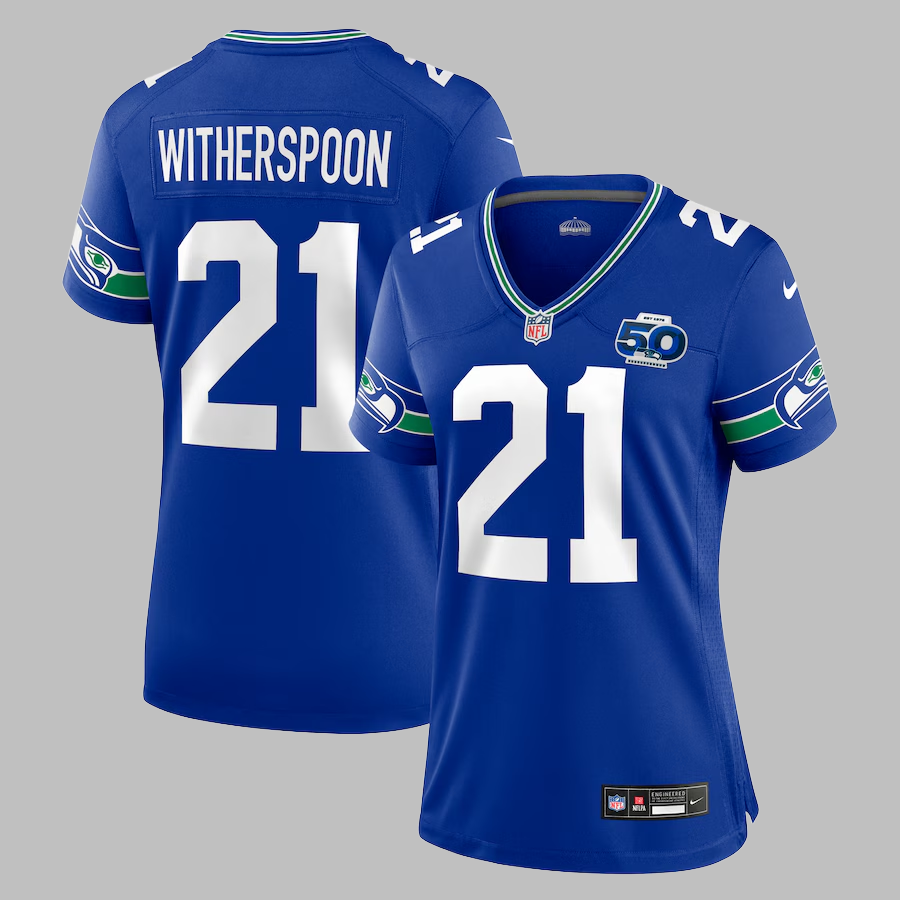 Women's Seattle Seahawks #21 Devon Witherspoon All Stitched NFL Royal 50th Season Throwback Jersey