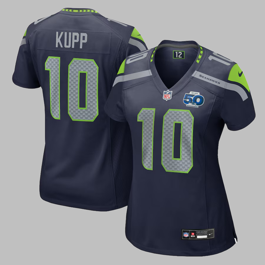 Women's Seattle Seahawks #10 Cooper Kupp All Stitched NFL College Navy 50th Season Jersey