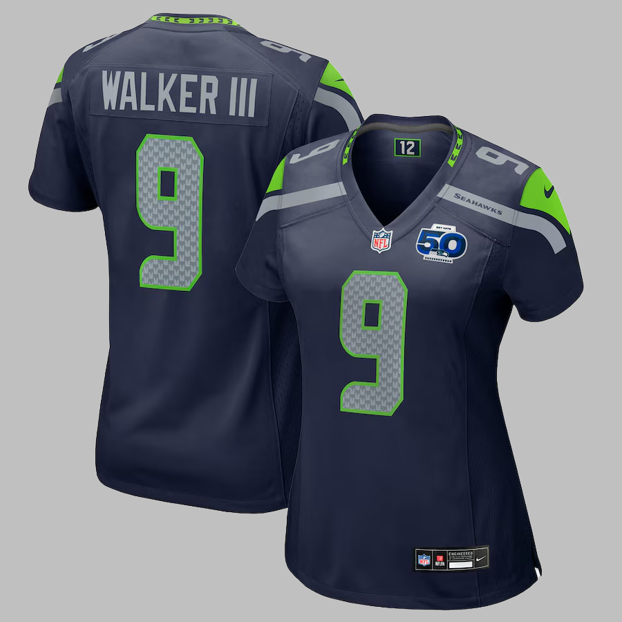 Women's Seattle Seahawks #9 Kenneth Walker III All Stitched NFL College Navy 50th Season Jersey