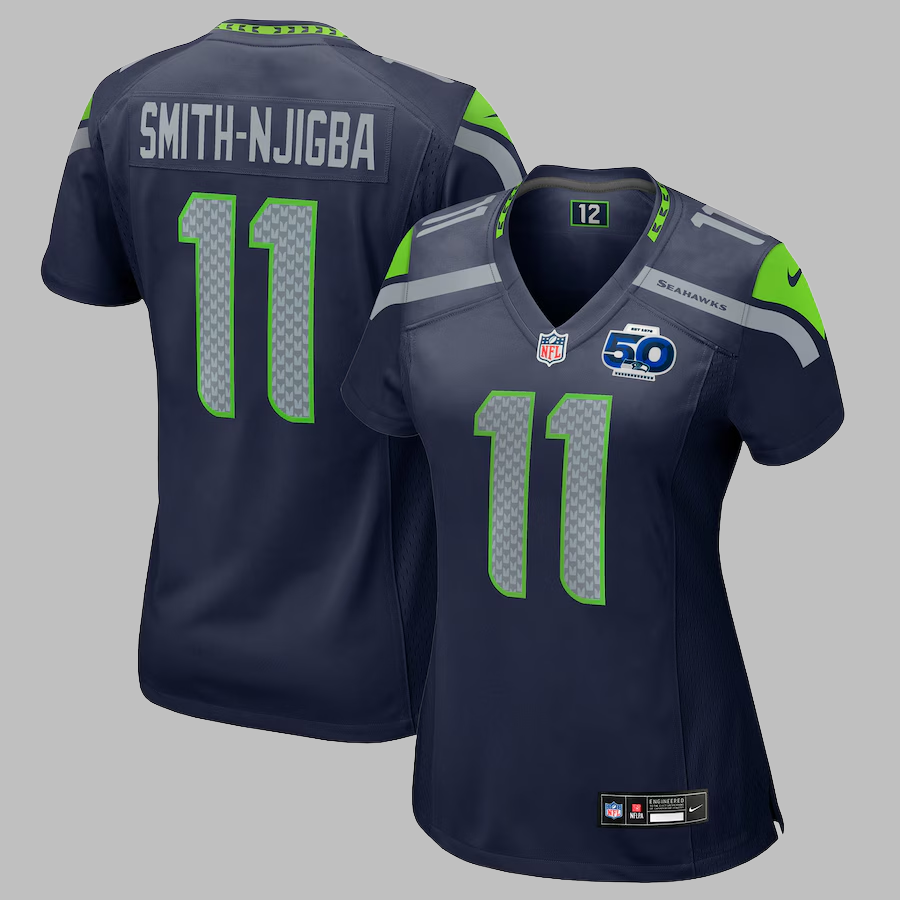 Women's Seattle Seahawks #11 Jaxon Smith-Njigba All Stitched NFL College Navy 50th Season Jersey