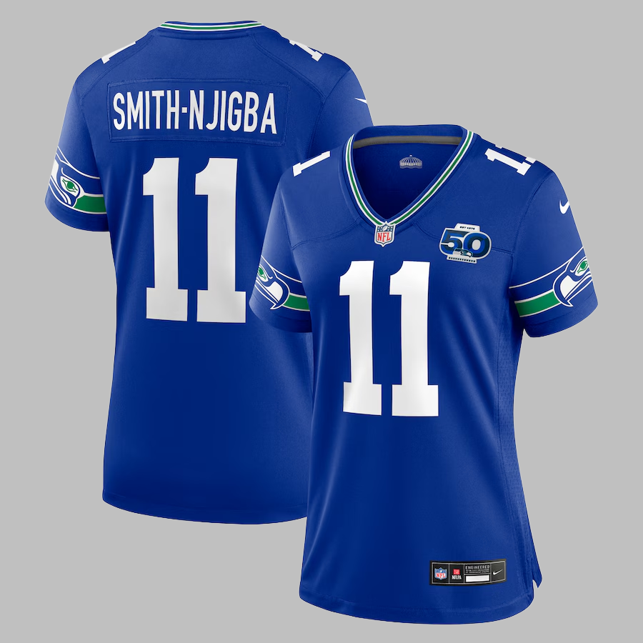 Women's Seattle Seahawks #11 Jaxon Smith-Njigba All Stitched NFL Royal 50th Season Throwback Jersey