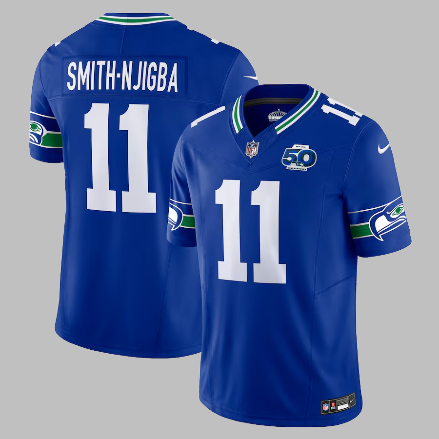Men's Seattle Seahawks #11 Jaxon Smith-Njigba Stitched Limited NFL Jersey 50th Patch