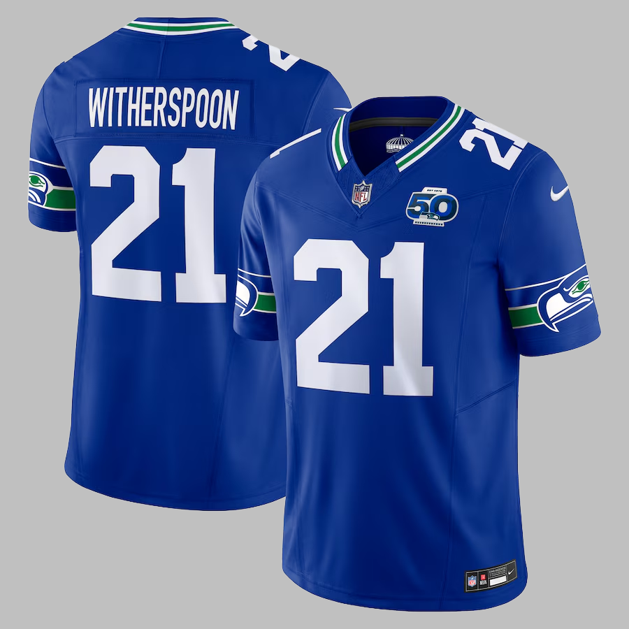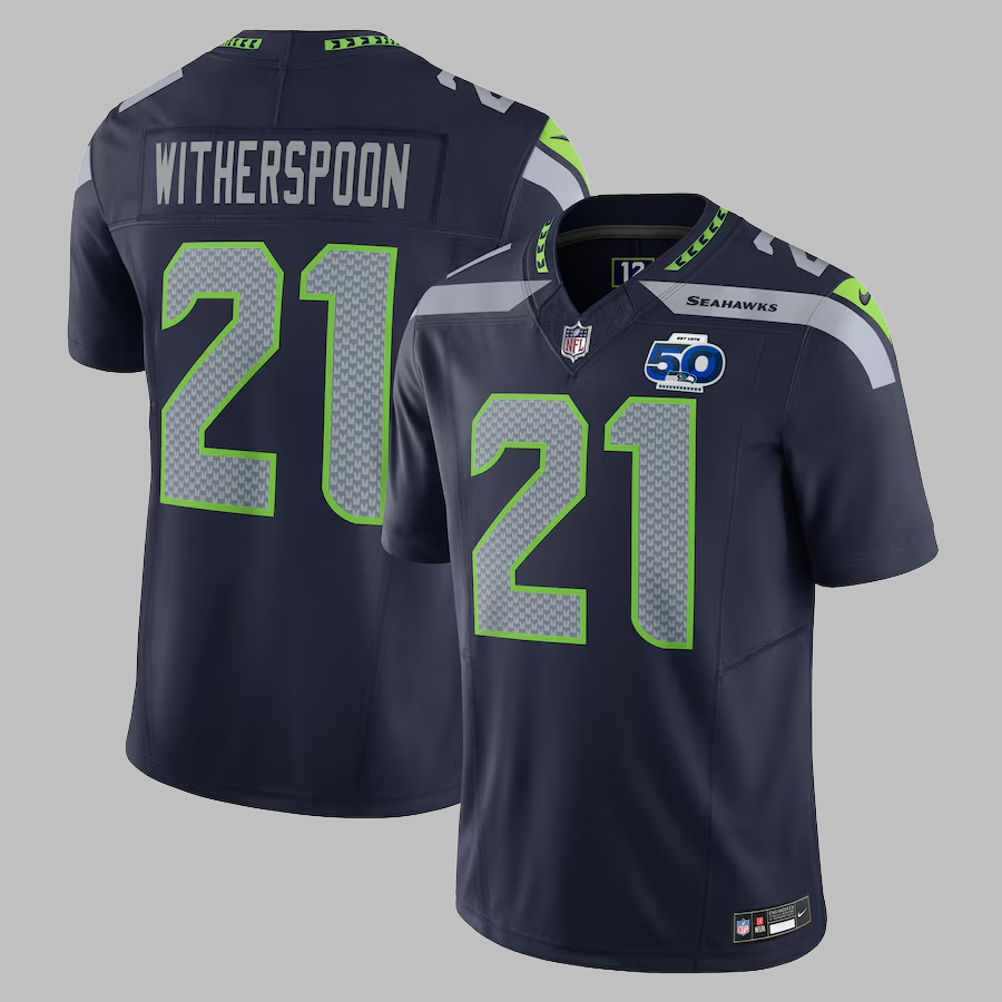 Men's Seattle Seahawks #21 Devon Witherspoon Stitched Limited NFL Jersey 50th Patch