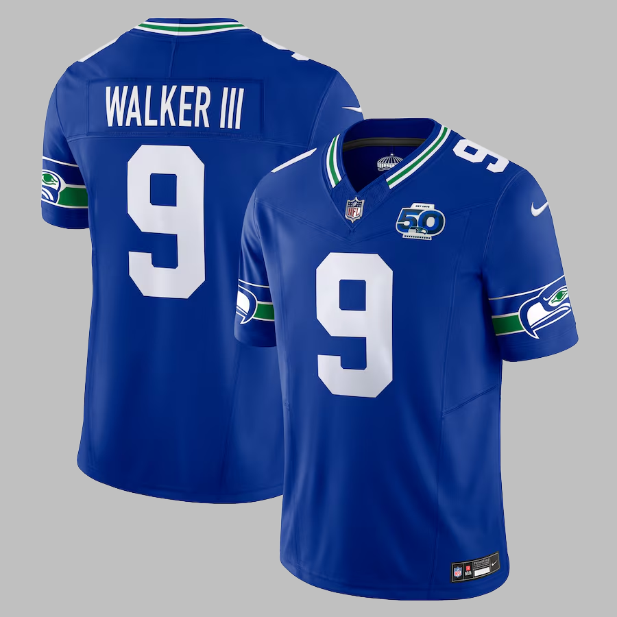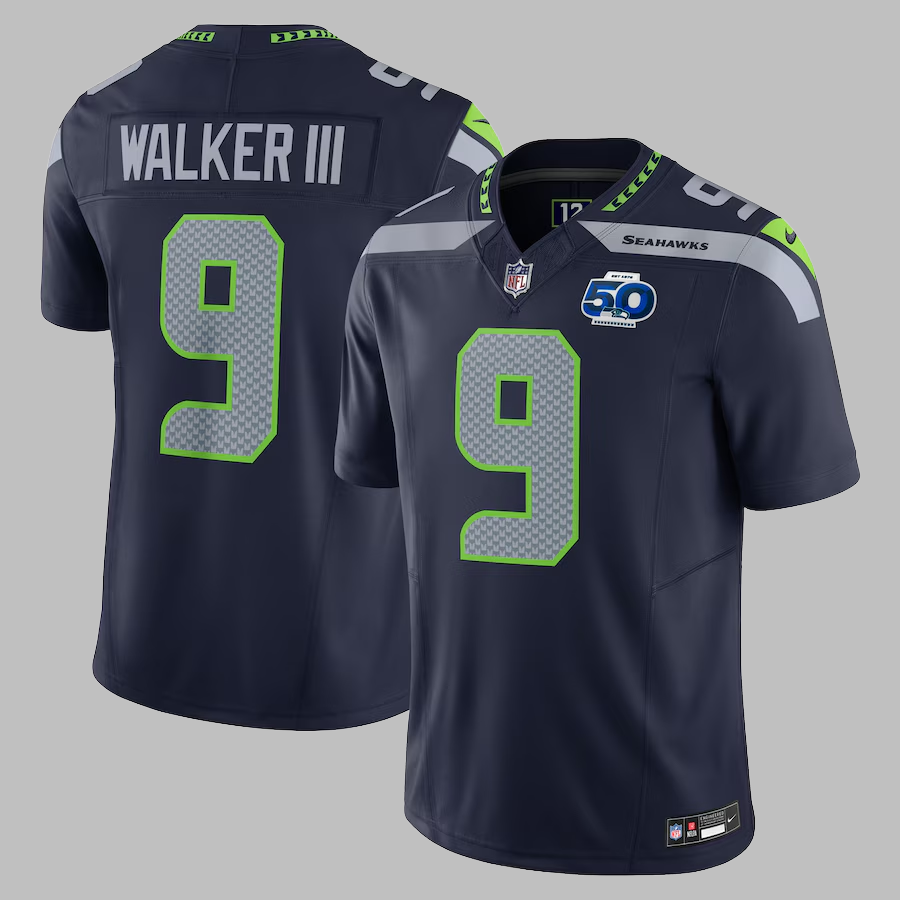 Men's Seattle Seahawks #9 Kenneth Walker III Stitched Limited NFL Jersey 50th Patch