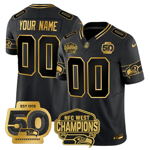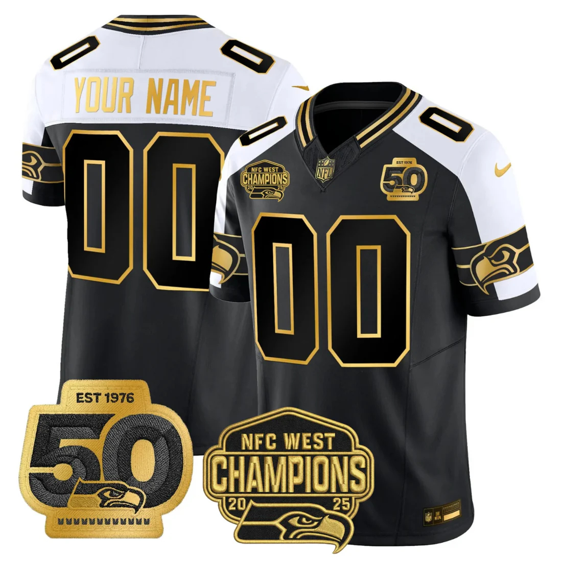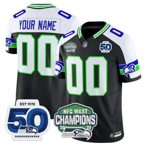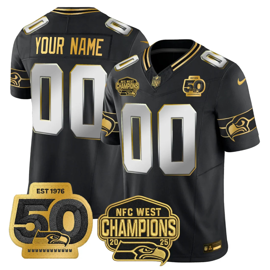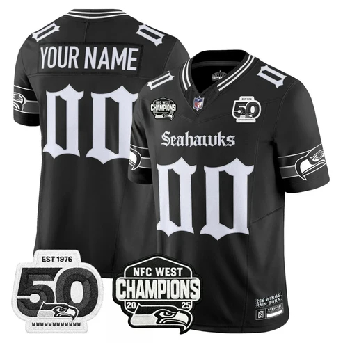 Seattle Seahawks 50th & NFC West Champions Patch Gothic Edition Custom Jersey - All Stitched - 10311