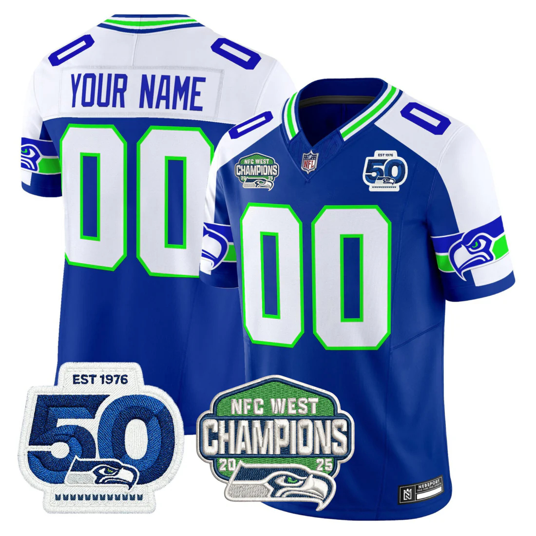 Seattle Seahawks 50th & NFC West Champions Patch Vapor Limited Custom Jersey - All Stitched - 10611