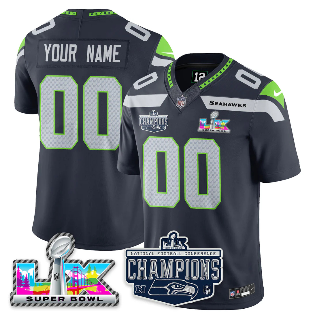 Seattle Seahawks 2025 NFC Champions Vapor Limited Custom Jersey - All Stitched - 10311