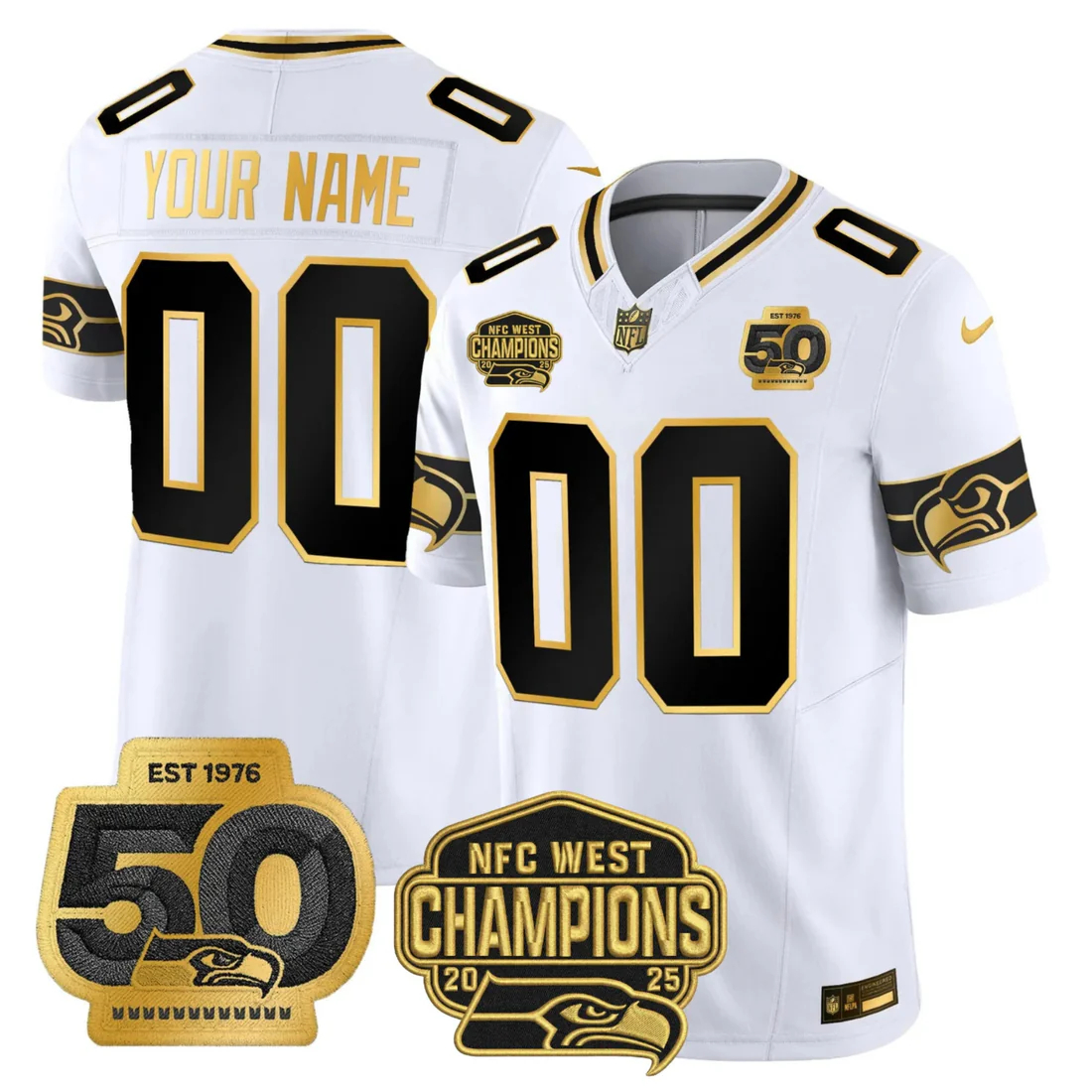 Seattle Seahawks 50th & NFC West Champions Patch Patch Gold Vapor Limited Custom Jersey - All Stitched - 10510