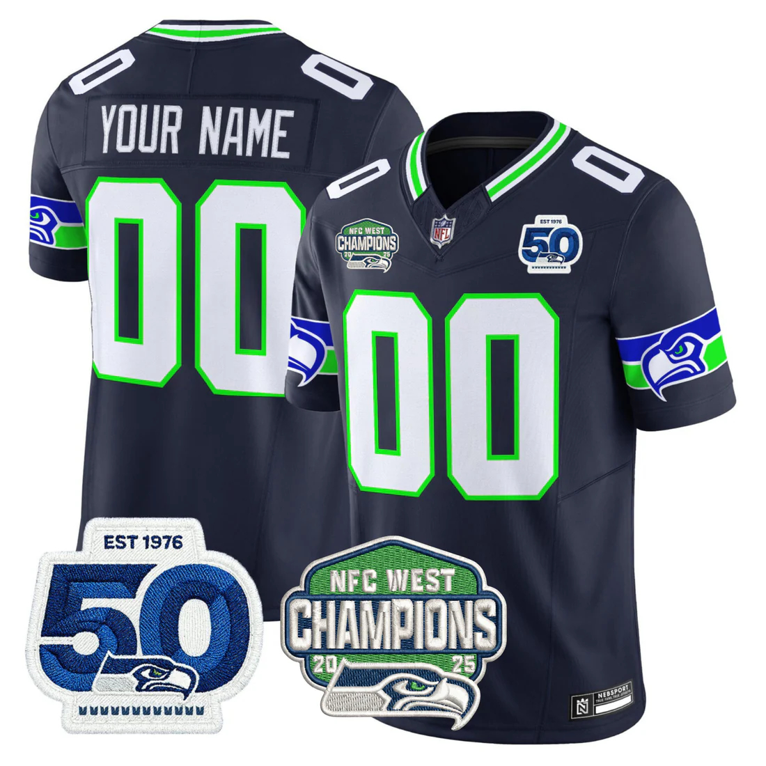 Seattle Seahawks 50th & NFC West Champions Patch Vapor Limited Custom Jersey - All Stitched - 10612