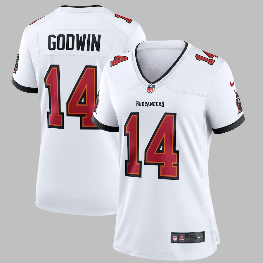 Women's Tampa Bay Buccaneers #14 Chris Godwin All Stitched NFL White Jersey