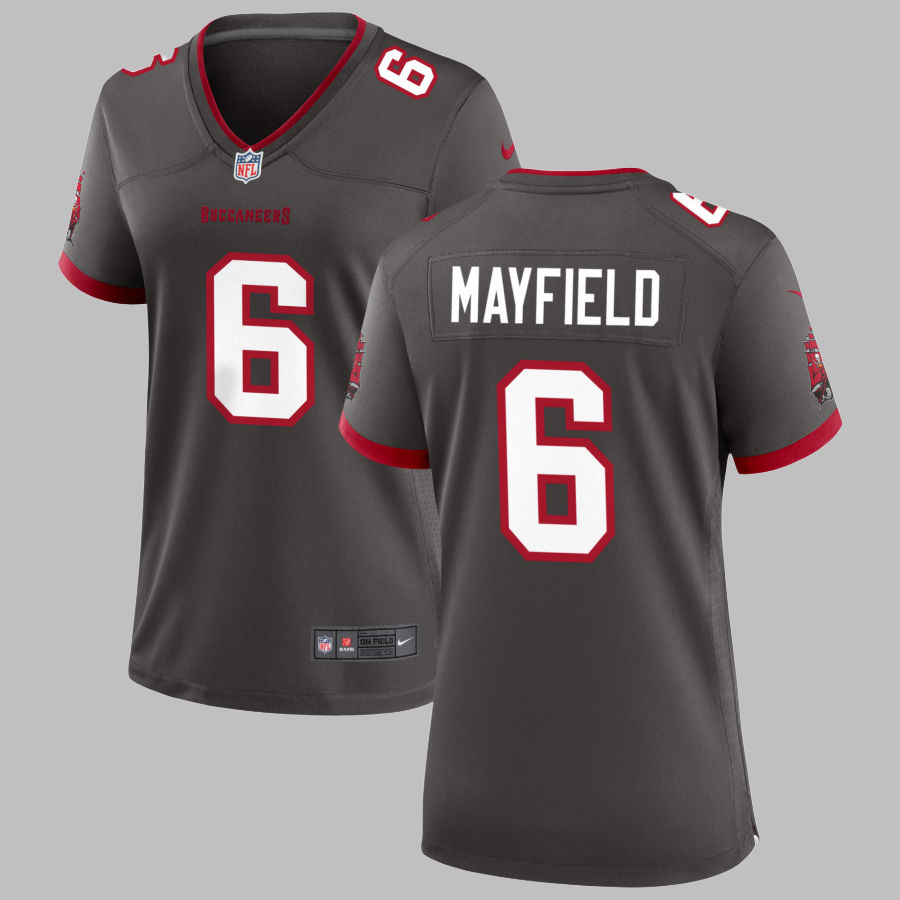 Women's Tampa Bay Buccaneers #6 Baker Mayfield All Stitched NFL Pewter Alternate Jersey