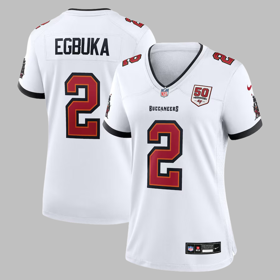 Women's Tampa Bay Buccaneers #2 Emeka Egbuka All Stitched NFL White 50th Season Jersey