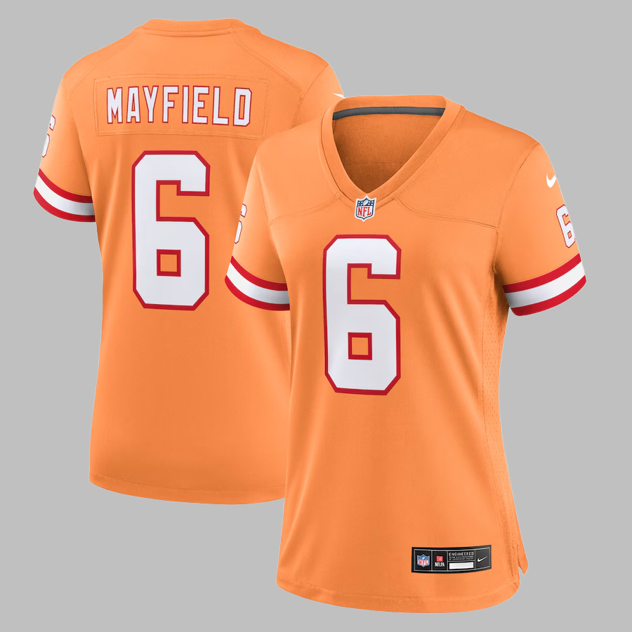Women's Tampa Bay Buccaneers #6 Baker Mayfield All Stitched NFL Orange Throwback Jersey
