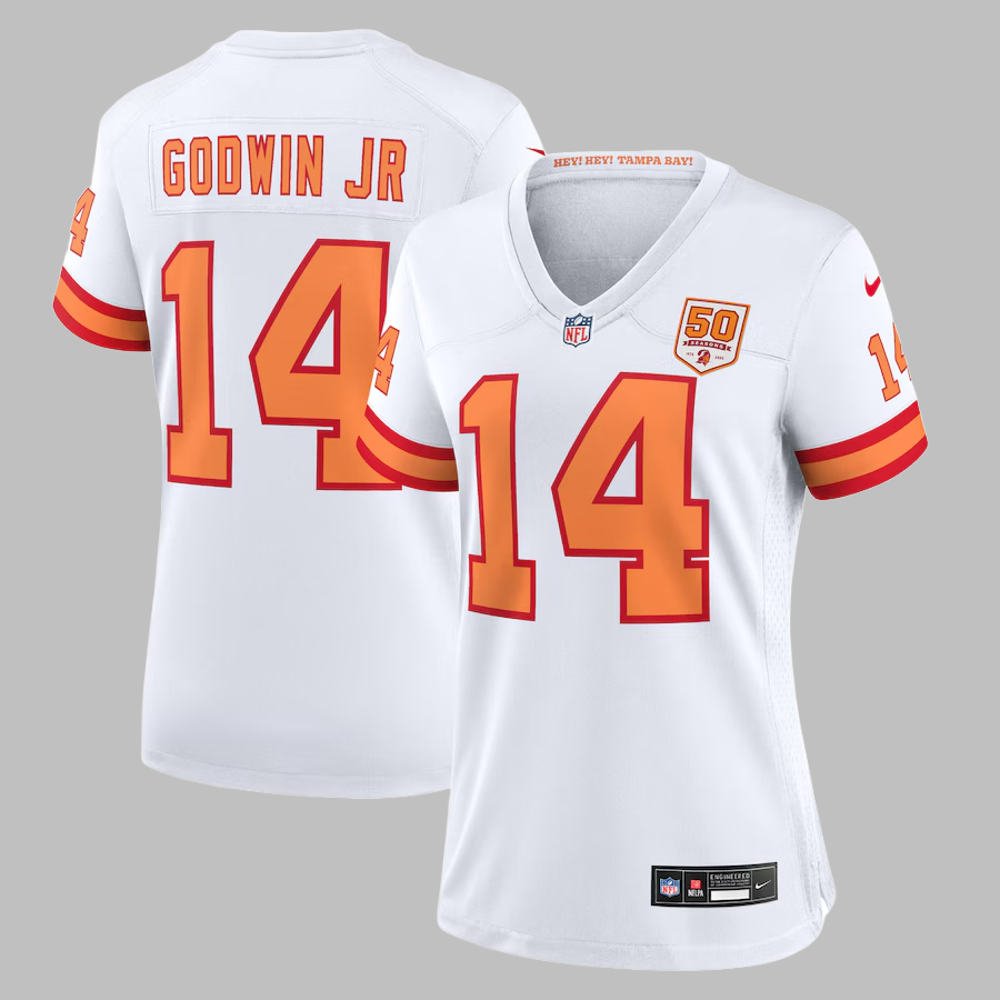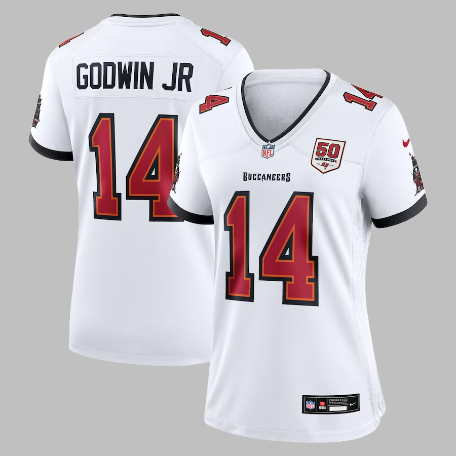 Women's Tampa Bay Buccaneers #14 Chris Godwin All Stitched NFL White 50th Season Jersey