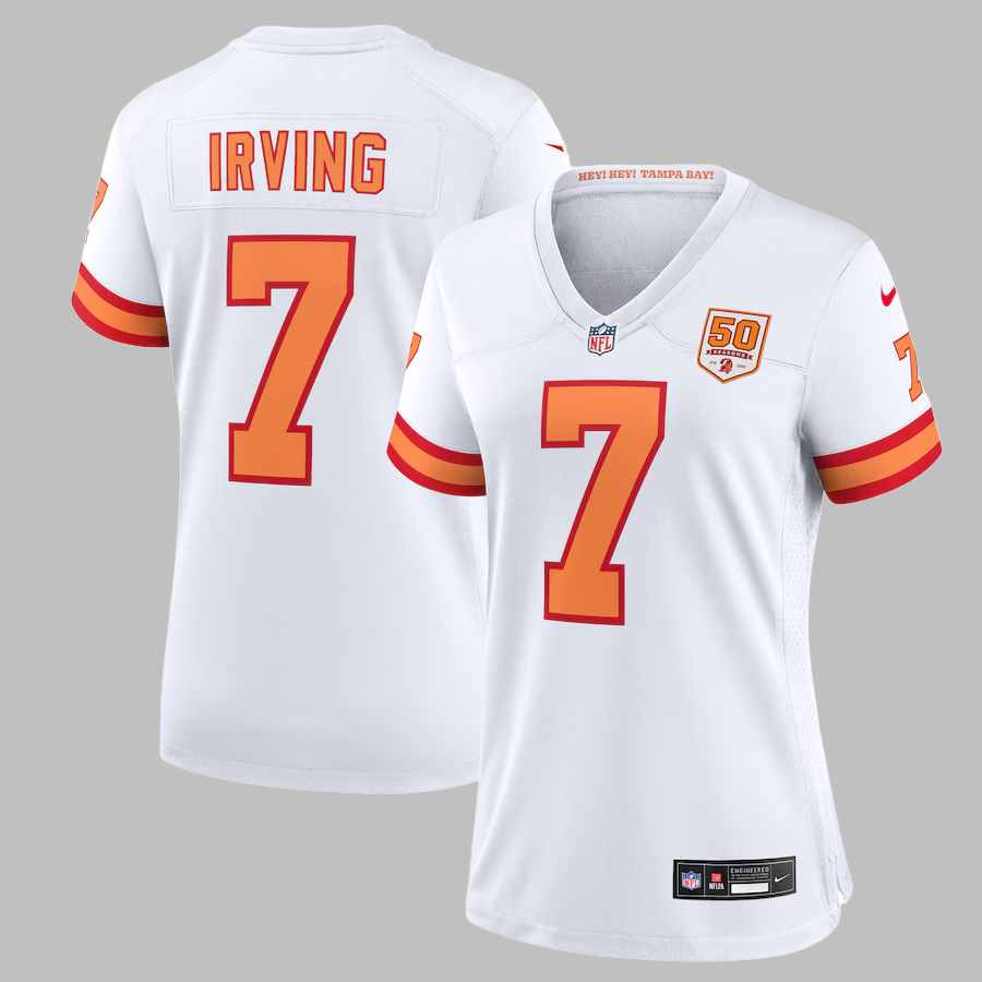 Women's Tampa Bay Buccaneers #7 Bucky Irving All Stitched NFL White 50th Season Jersey
