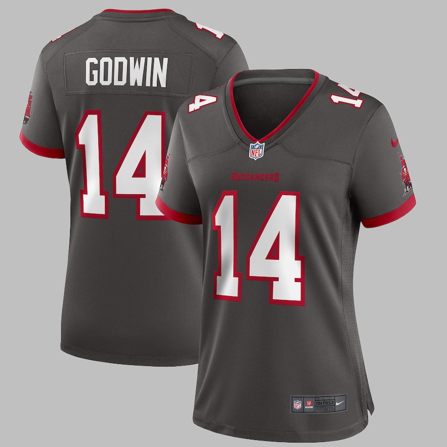 Women's Tampa Bay Buccaneers #14 Chris Godwin All Stitched NFL Pewter Alternate Jersey